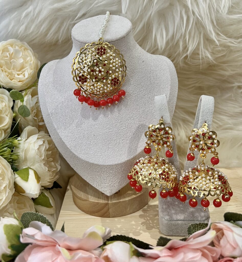 Jadau tikka set + earings red